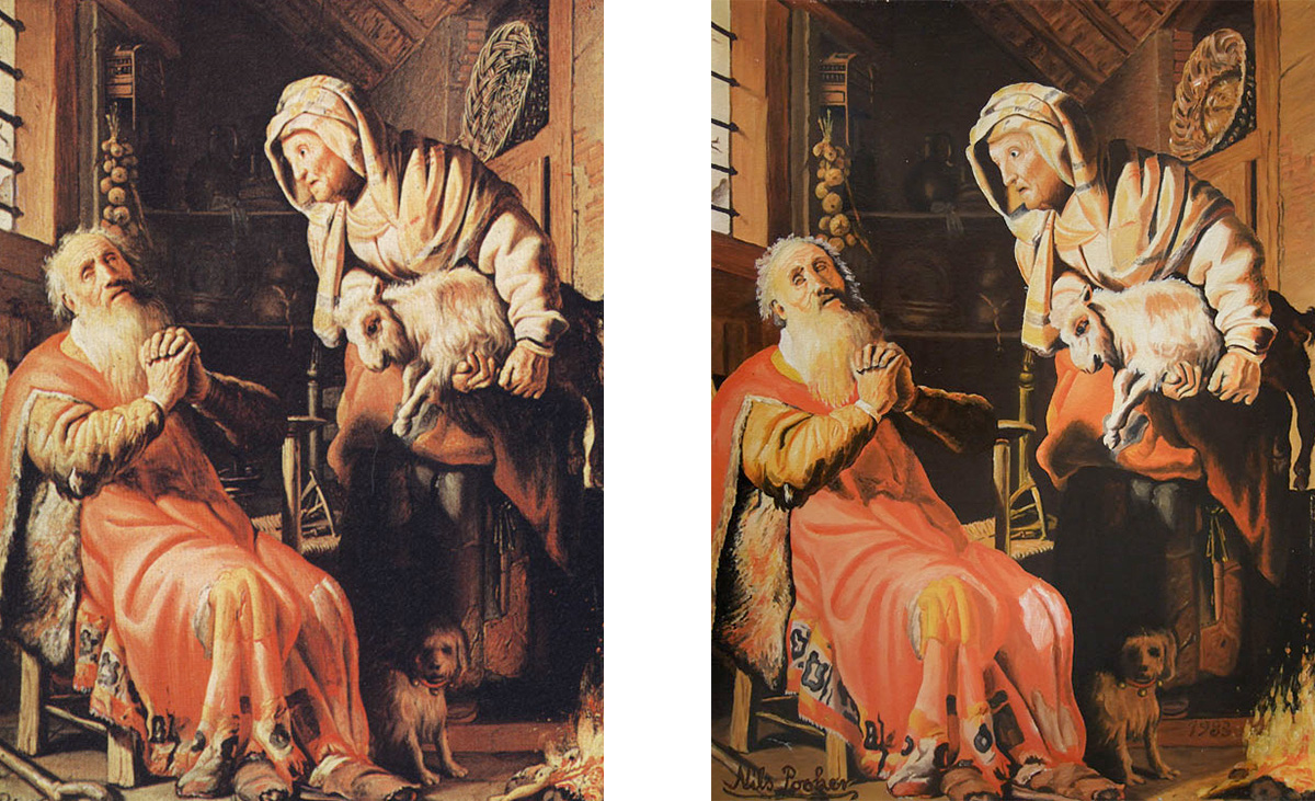 Nils Pooker, Kopie nach Rembrandt aus einem Taschenbuch, 1983, 30 x 40 cm (links die Vorlage, rechts die Kopie)