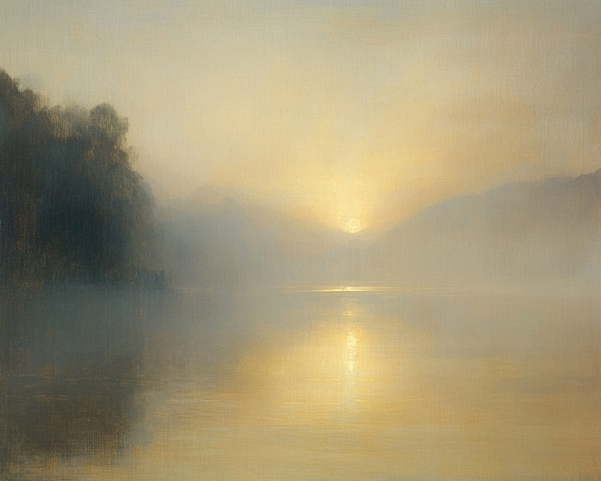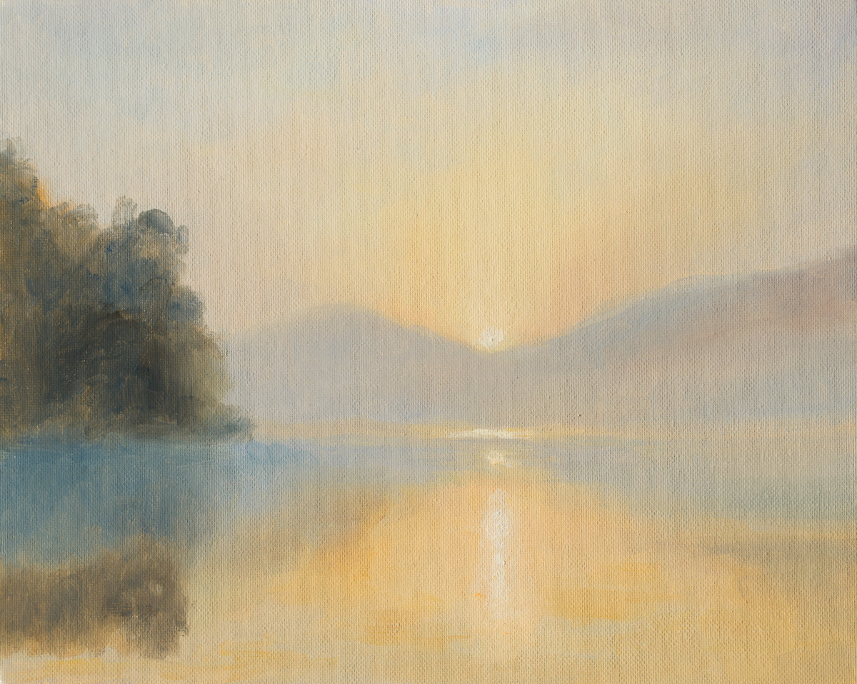 den Effekt von Nebel oder Dunst über dem See zu wiederzugeben. Den