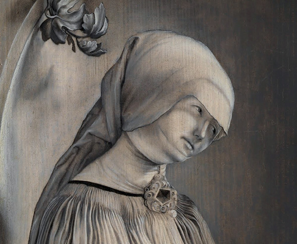 Hell-Dunkel-Verteilung genügt. Zur Orientierung für die Tonwerte der Grisaille-Untermalung hier die Vorlage als helle Schwarzweißumsetzung.