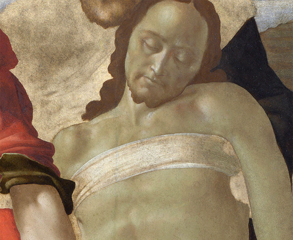Grisaille-Untermalung aufgetragen, auch dort, wo das Motiv eher